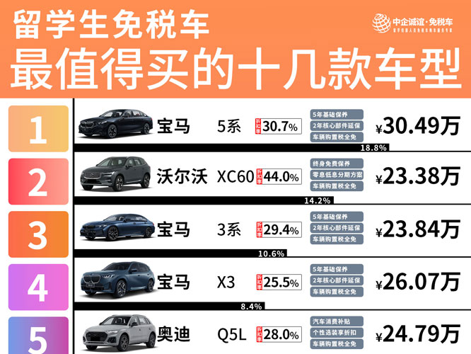 留学生买免税车,既要“薅到羊毛”又要“选对车型”!中企诚谊用二十多年的经验帮你制定安心免税购车方案,资格办理,价格分析,车型推荐,免税上牌全流程办理一站式搞定免...