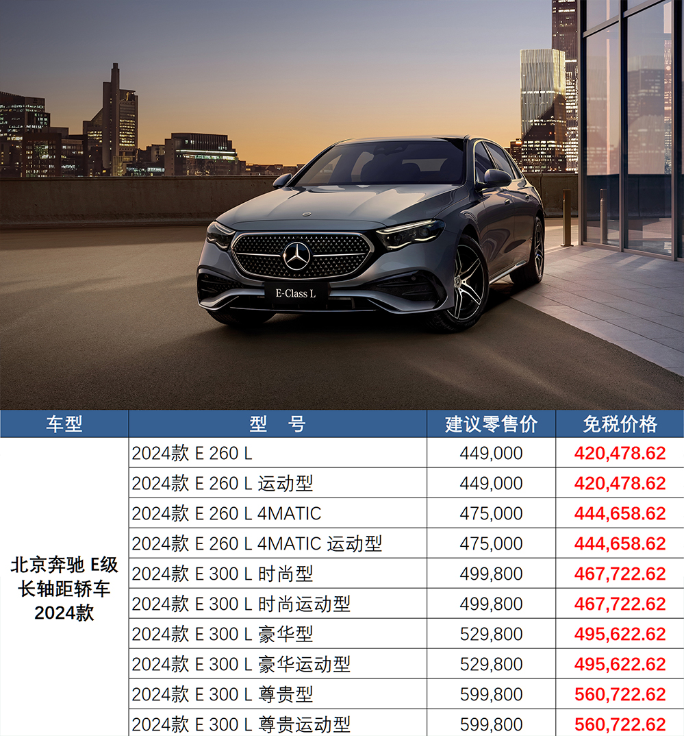 北京奔驰其他车型免税价未调整,全系不提供选装服务。